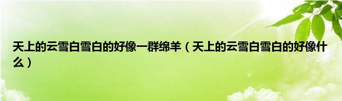 大家好,小科来为大家解答以上问题。天上的云雪白雪白的好像一群绵羊,天上的云雪白雪白的好像什么很多人还不知道,现在让我们一起来看看吧!