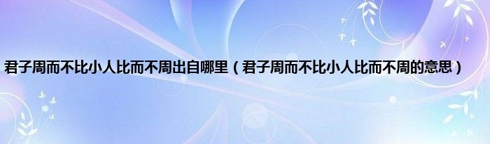 大家好,小科来为大家解答以上问题。君子周而不比小人比而不周出自哪里,君子周而不比小人比而不周的意思很多人还不知道,现在让我们一起来看看吧!