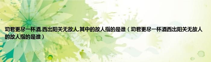 大家好,小科来为大家解答以上问题。劝君更尽一杯酒,西出阳关无故人,其中的故人指的是谁,劝君更尽一杯酒西出阳关无故人的故人指的是谁很多人还不知道,现在让我们一起来看看吧!