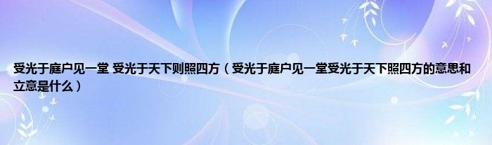 大家好,小科来为大家解答以上问题。受光于庭户见一堂 受光于天下则照四方,受光于庭户见一堂受光于天下照四方的意思和立意是什么很多人还不知道,现在让我们一起来看看吧!