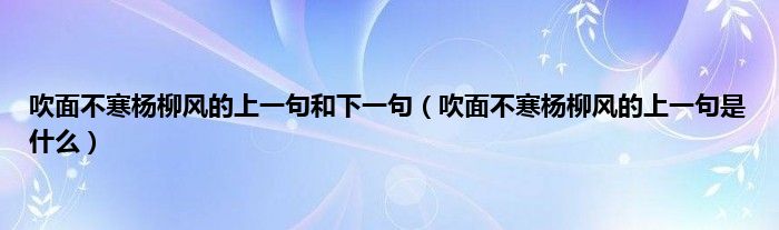 大家好,小科来为大家解答以上问题。吹面不寒杨柳风的上一句和下一句,吹面不寒杨柳风的上一句是什么很多人还不知道,现在让我们一起来看看吧!