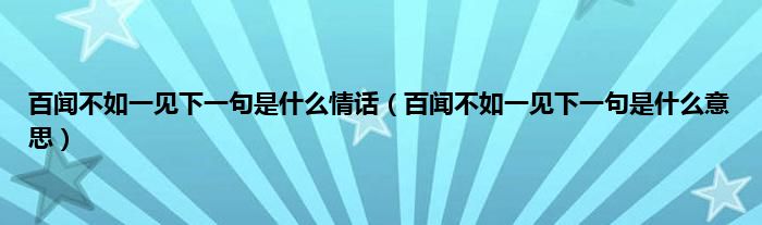 大家好,小科来为大家解答以上问题。百闻不如一见下一句是什么情话,百闻不如一见下一句是什么意思很多人还不知道,现在让我们一起来看看吧!
