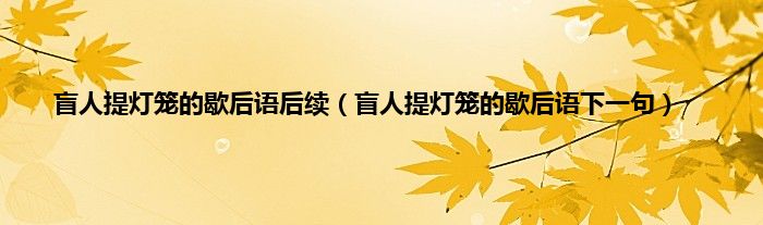 “瞎子提灯”是一句歇后语,下一句是: