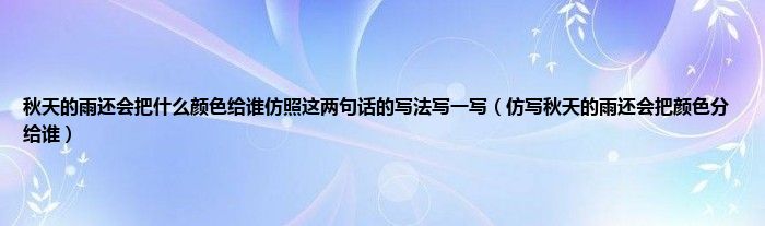 大家好,小科来为大家解答以上问题。秋天的雨还会把什么颜色给谁仿照这两句话的写法写一写,仿写秋天的雨还会把颜色分给谁很多人还不知道,现在让我们一起来看看吧!