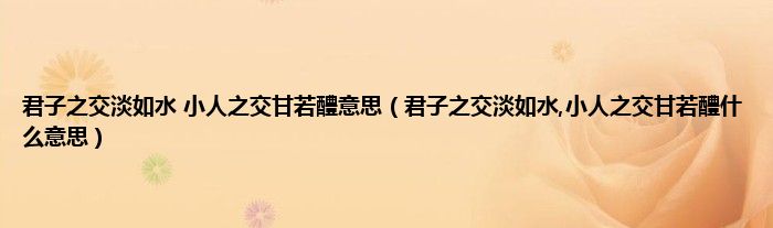 大家好,小科来为大家解答以上问题。君子之交淡如水 小人之交甘若醴意思,君子之交淡如水,小人之交甘若醴什么意思很多人还不知道,现在让我们一起来看看吧!