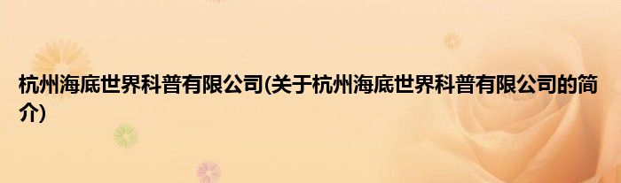 本文关于杭州海底世界科普有限公司的简介就讲解完毕,希望对大家有所帮助。