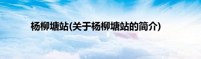 大家好,杨柳塘站,关于杨柳塘站的简介很多人还不知道,现在让我们一起来看看吧!