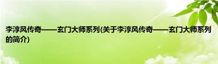 本文关于李淳风传奇——玄门大师系列的简介就讲解完毕,希望对大家有所帮助。