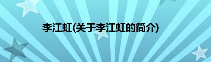 本文关于李江虹的简介就讲解完毕,希望对大家有所帮助。