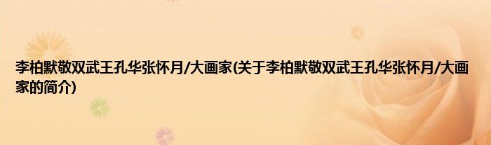 本文关于李柏默敬双武王孔华张怀月/大画家的简介就讲解完毕,希望对大家有所帮助。