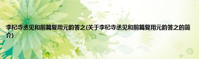 本文关于李杞寺丞见和前篇复用元韵答之的简介就讲解完毕,希望对大家有所帮助。