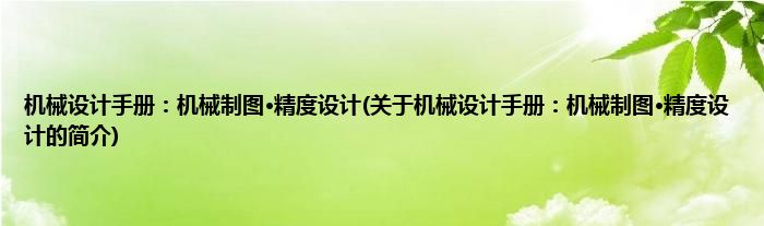 本文关于机械设计手册:机械制图·精度设计的简介就讲解完毕,希望对大家有所帮助。