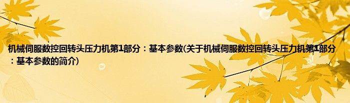 1、 《机械伺服数控回转头压力机第1部分:基本参数》是2021年1月1日实施的一项行业标准。