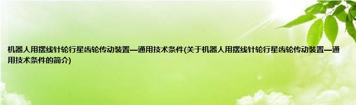 本文关于机器人用摆线针轮行星齿轮传动装置—通用技术条件的简介就讲解完毕,希望对大家有所帮助。
