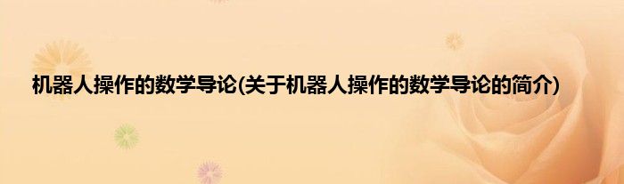 大家好,机器人操作的数学导论,关于机器人操作的数学导论的简介很多人还不知道,现在让我们一起来看看吧!