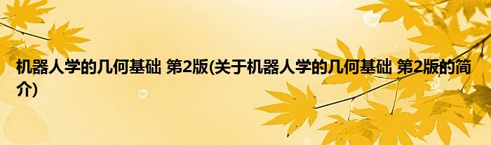 本文关于机器人学的几何基础 第2版的简介就讲解完毕,希望对大家有所帮助。