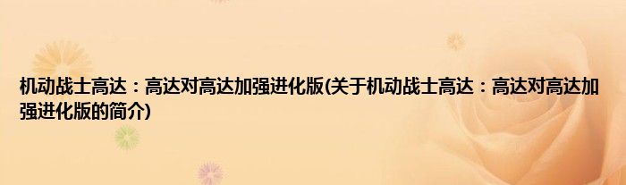 机动战士高达:高达对高达加强进化版(关于机动战士高达:高达对高达加强进化版的简介)