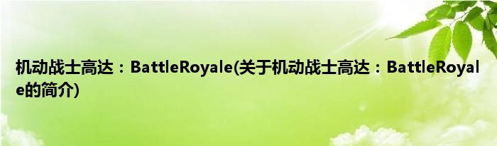 机动战士高达:BattleRoyale(关于机动战士高达:BattleRoyale的简介)
