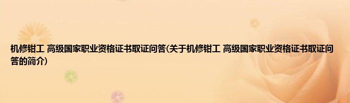 本文关于机修钳工 高级国家职业资格证书取证问答的简介就讲解完毕,希望对大家有所帮助。