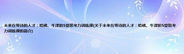 本文关于未来在等待的人才:哈佛、牛津的5堂思考力训练课的简介就讲解完毕,希望对大家有所帮助。