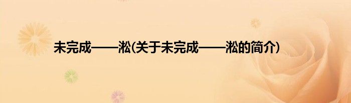 本文关于未完成——淞的简介就讲解完毕,希望对大家有所帮助。