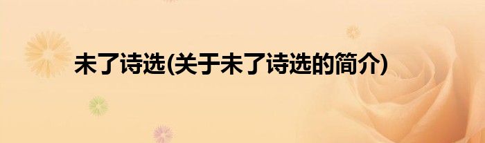 本文关于未了诗选的简介就讲解完毕,希望对大家有所帮助。