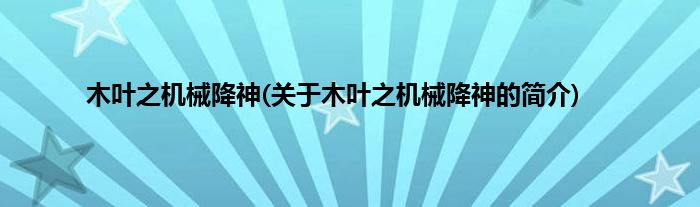 大家好,木叶之机械降神,关于木叶之机械降神的简介很多人还不知道,现在让我们一起来看看吧!