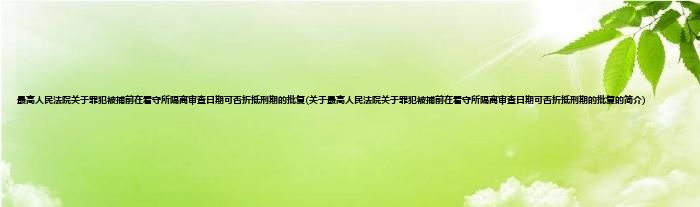 本文关于最高人民法院关于罪犯被捕前在看守所隔离审查日期可否折抵刑期的批复的简介就讲解完毕,希望对大家有所帮助。