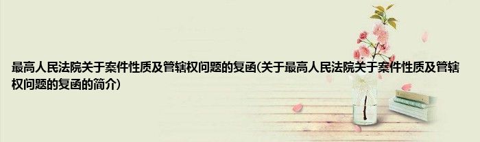 大家好,最高人民法院关于案件性质及管辖权问题的复函,关于最高人民法院关于案件性质及管辖权问题的复函的简介很多人还不知道,现在让我们一起来看看吧!