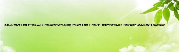 大家好,最高人民法院关于新疆生产建设兵团人民法院案件管辖权问题的若干规定,关于最高人民法院关于新疆生产建设兵团人民法院案件管辖权问题的若干规定的简介很多人还不知道,现在让我们一起来看看吧!