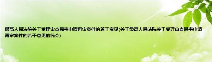 大家好,最高人民法院关于受理审查民事申请再审案件的若干意见,关于最高人民法院关于受理审查民事申请再审案件的若干意见的简介很多人还不知道,现在让我们一起来看看吧!