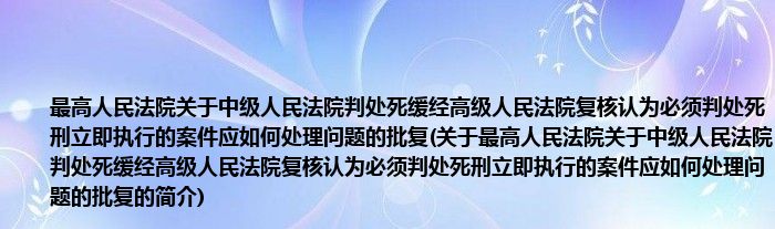 本文关于最高人民法院关于中级人民法院判处死缓经高级人民法院复核认为必须判处死刑立即执行的案件应如何处理问题的批复的简介就讲解完毕,希望对大家有所帮助。