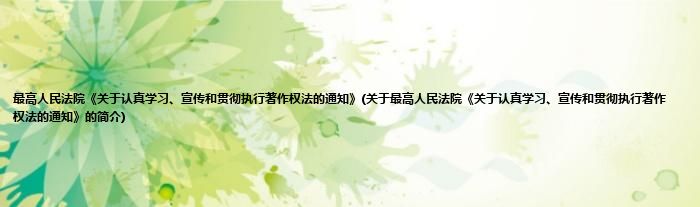 最高人民法院《关于认真学习、宣传和贯彻执行著作权法的通知》(关于最高人民法院《关于认真学习、宣传和贯彻执行著作权法的通知》的简介)