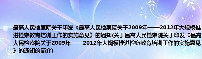 1、 最高人民检察院关于印发《最高人民检察院关于2009年——2012年大规模推进检察教育培训工作的实施意见》的通知在2009.03.26由最高人民检察院颁布。