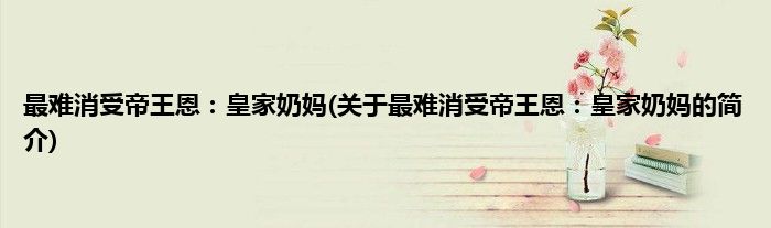 本文关于最难消受帝王恩:皇家奶妈的简介就讲解完毕,希望对大家有所帮助。