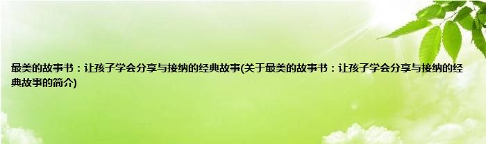 本文关于最美的故事书:让孩子学会分享与接纳的经典故事的简介就讲解完毕,希望对大家有所帮助。