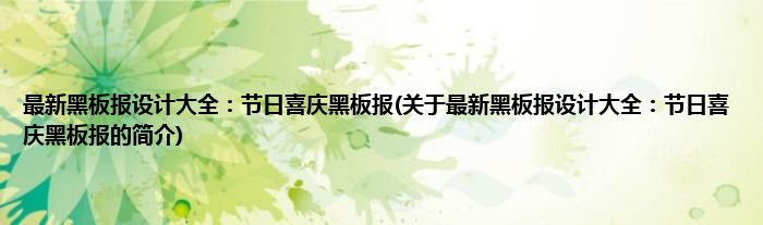 本文关于最新黑板报设计大全:节日喜庆黑板报的简介就讲解完毕,希望对大家有所帮助。