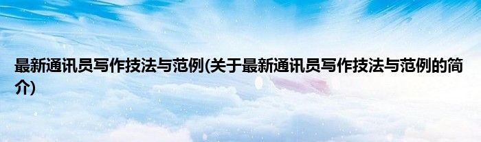 本文关于最新通讯员写作技法与范例的简介就讲解完毕,希望对大家有所帮助。