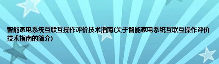大家好,智能家电系统互联互操作评价技术指南,关于智能家电系统互联互操作评价技术指南的简介很多人还不知道,现在让我们一起来看看吧!