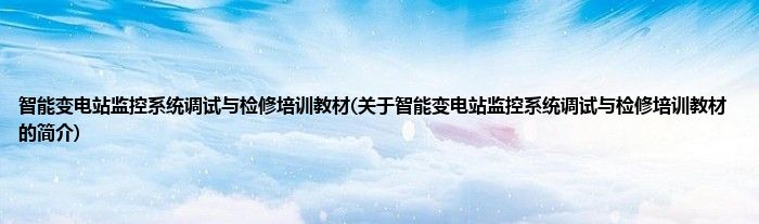 大家好,智能变电站监控系统调试与检修培训教材,关于智能变电站监控系统调试与检修培训教材的简介很多人还不知道,现在让我们一起来看看吧!