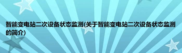 本文关于智能变电站二次设备状态监测的简介就讲解完毕,希望对大家有所帮助。