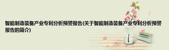 本文关于智能制造装备产业专利分析预警报告的简介就讲解完毕,希望对大家有所帮助。