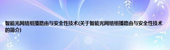 本文关于智能光网络组播路由与安全性技术的简介就讲解完毕,希望对大家有所帮助。