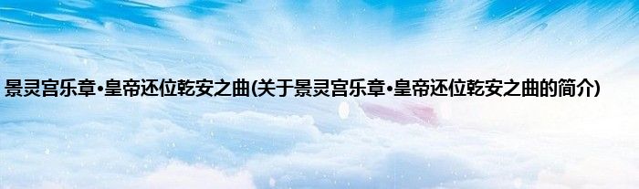 本文关于景灵宫乐章·皇帝还位乾安之曲的简介就讲解完毕,希望对大家有所帮助。