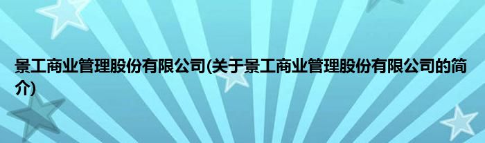 本文关于景工商业管理股份有限公司的简介就讲解完毕,希望对大家有所帮助。