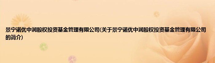 本文关于景宁诺优中润股权投资基金管理有限公司的简介就讲解完毕,希望对大家有所帮助。