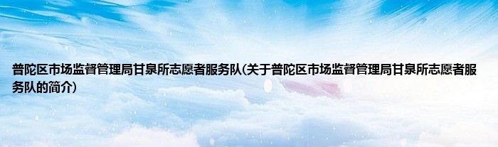 大家好,普陀区市场监督管理局甘泉所志愿者服务队,关于普陀区市场监督管理局甘泉所志愿者服务队的简介很多人还不知道,现在让我们一起来看看吧!