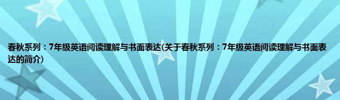 本文关于春秋系列:7年级英语阅读理解与书面表达的简介就讲解完毕,希望对大家有所帮助。