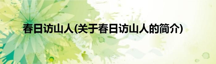 大家好,春日访山人,关于春日访山人的简介很多人还不知道,现在让我们一起来看看吧!
