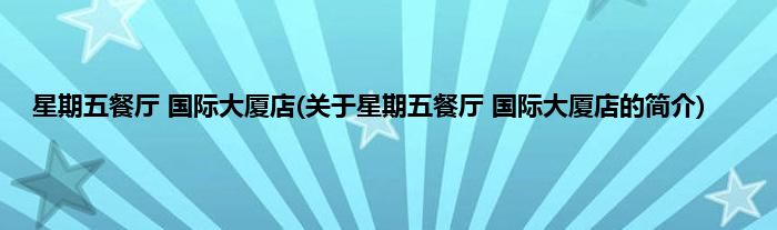 大家好,星期五餐厅 国际大厦店,关于星期五餐厅 国际大厦店的简介很多人还不知道,现在让我们一起来看看吧!